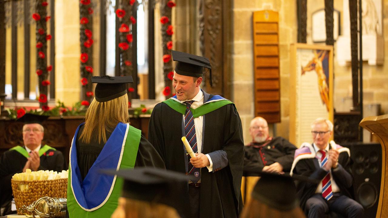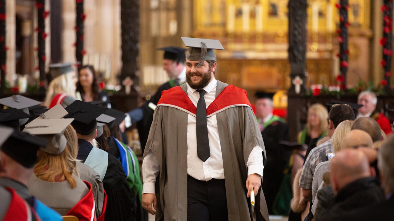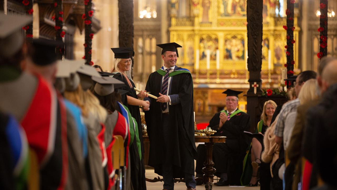 Photos from the Wakefield College University Centre 2018 Graduation Ceremony including robing, photography, the procession and ceremony in Wakefield Cathedral.