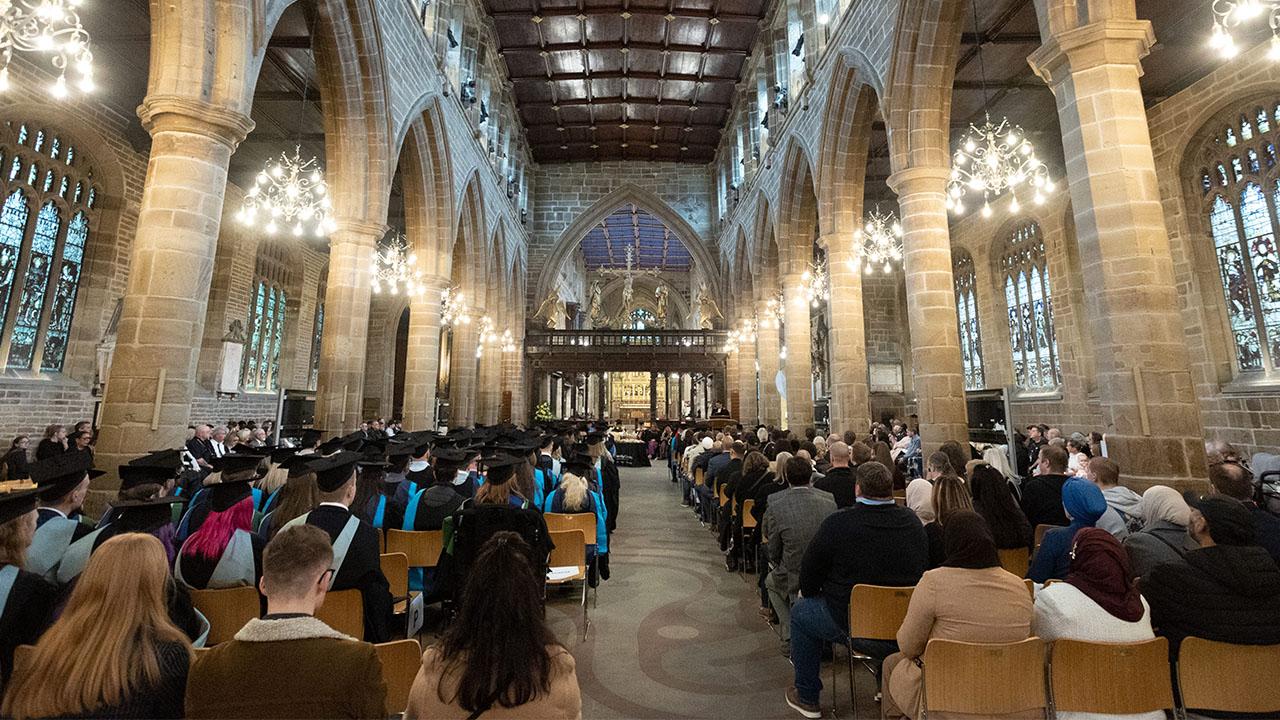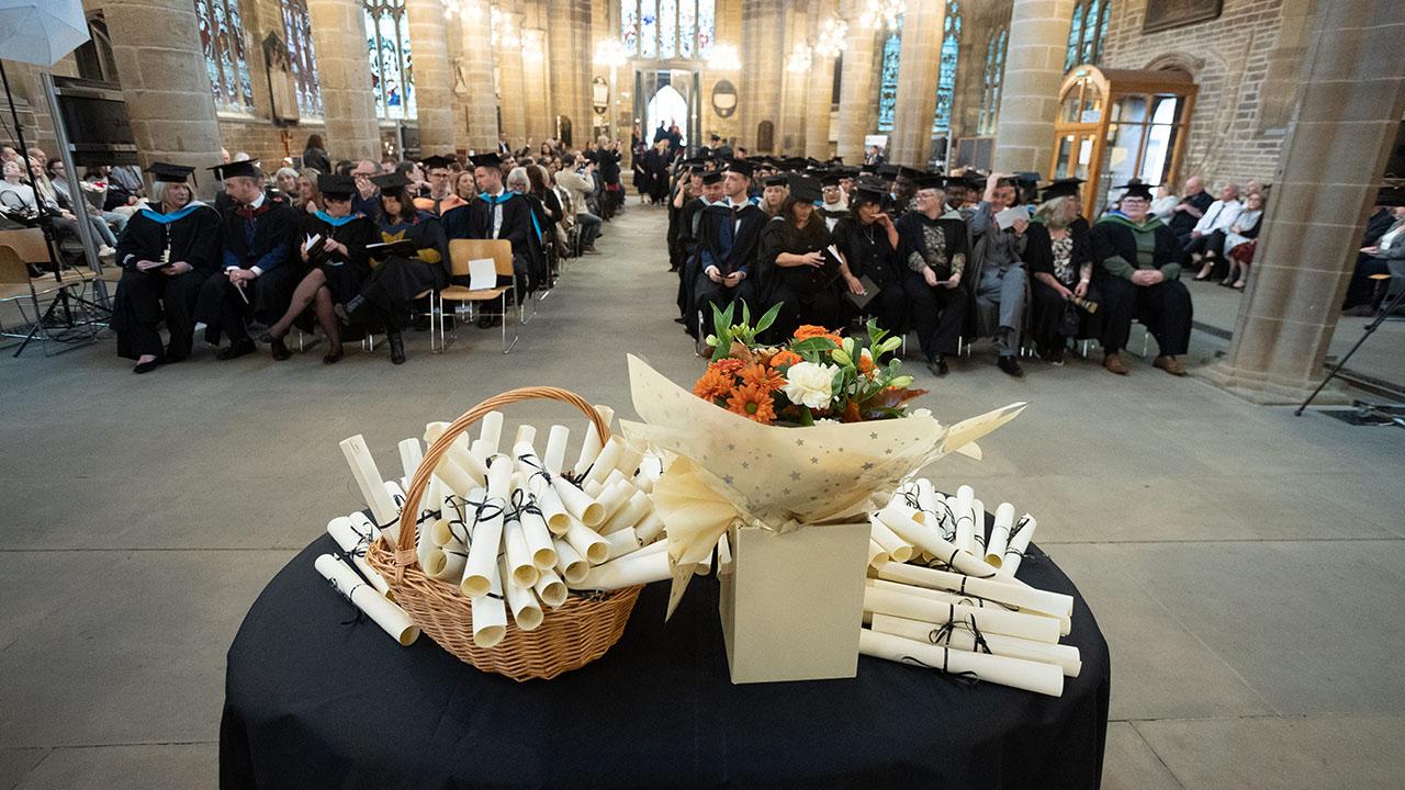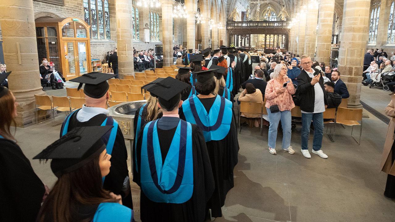 Photos from the 2024 Wakefield College University Centre Graduation Ceremony including robing, photography, the procession and ceremony in Wakefield Cathedral.