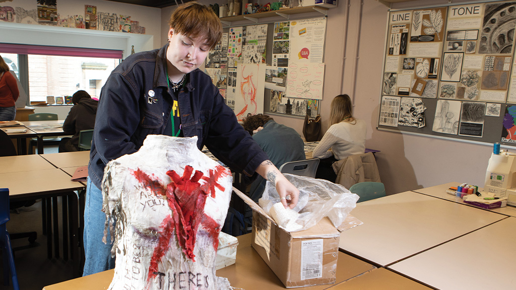 You will be introduced to a variety of experiences involving a range of media, audiences, processes and techniques. Workshop style sessions will give practical knowledge and experience through tutor demonstrations and production of samples. You will explore images, artefacts and resources relating to a range of art, craft and design, from the past and from recent times. Visits to local galleries will also be encouraged both independently and through organised visits.