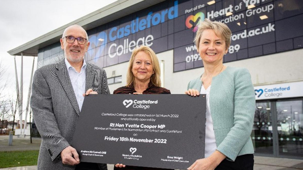 Yvette Cooper unveiled the plaque to declare Castleford College officially open after it was granted College status in March 2022, following the formation of the Heart of Yorkshire Education Group.