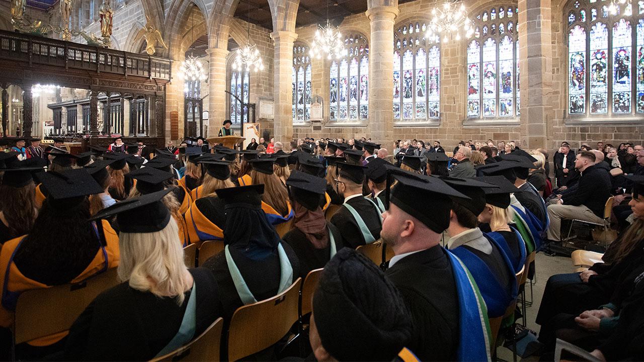 Photos from the 2025 Wakefield College University Centre Graduation Ceremony including robing, photography, the procession and ceremony in Wakefield Cathedral.